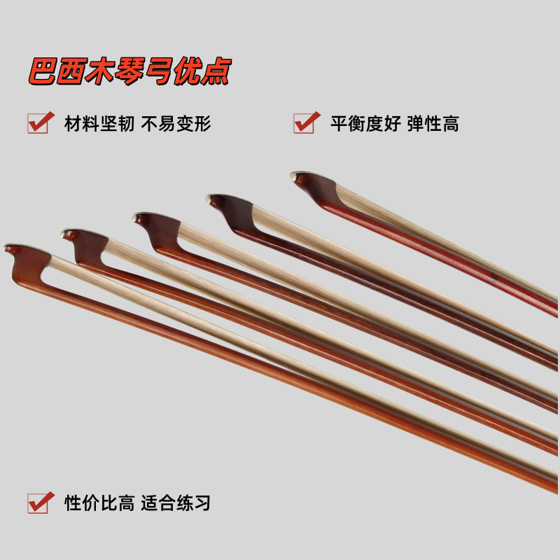 采用自然风干十年以上的巴西木制作而成,弓杆为八角形状或圆形,